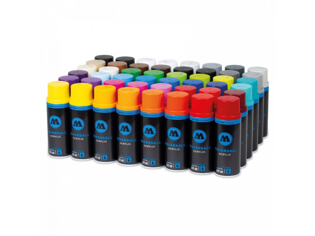 Spreje řady Coversall™ waterbased jsou výjimečné svým vysokým tlakem, skvělou kryvostí a minimální zápachem. Jsou optimalizovány pro potřeby graffiti a vyhovují nejaktuálnějším požadavkům. Díky vodní bázi je práce bez zápachu, vysoký tlak zaručuje rychlost při práci čemuž je upraveno krytí, které je skvělé. Barvy s vysokým obsahem pigmentu velice rychle schnou, jsou matné a odolné povětrnostním vlivům i UV záření. Lze použít na plast, dřevo, kov, papír, beton, kůže a většinu dalších materiálů.