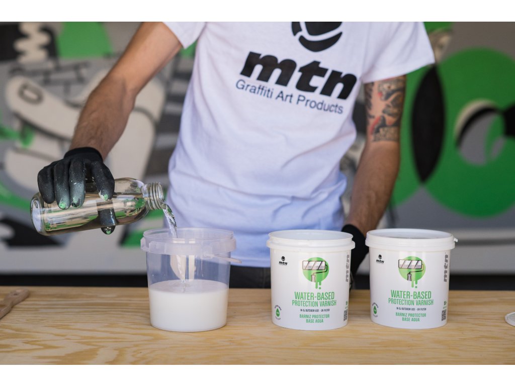 Bezbarvý, ochranný lak španělského výrobce MTN ve variantě lesk. Lak je po vyschnutí transparentní a dodává ochranu před UV zářením. Je vhodný jak do interiéru, tak exteriéru, barvám dodává nejen ochranu, ale i zvýrazňuje barvy a dodává malbám hloubku. Lak je určen k finální úpravě betonu, cihel a jakéhokoliv zdiva, dřeva, sádrokartonů, kovů a dalších materiálů. Lak je nehořlavý a není jedovatý, přesto není vhodný pro kontakt s hračkami, či potravinami. Vydatnost laku je asi 15m2/kg. Ředí se vodou v poměru cca 1:9. Nanášení je možné štětcem, stříkáním, či máčením. Lak nesmí zamrznout! Zaschlý je asi po 30 minutách, dle podmínek. Nežloutne!