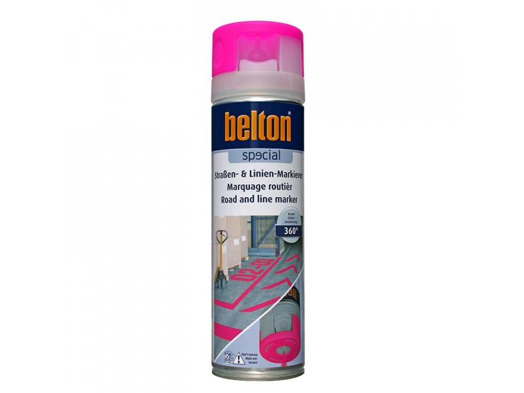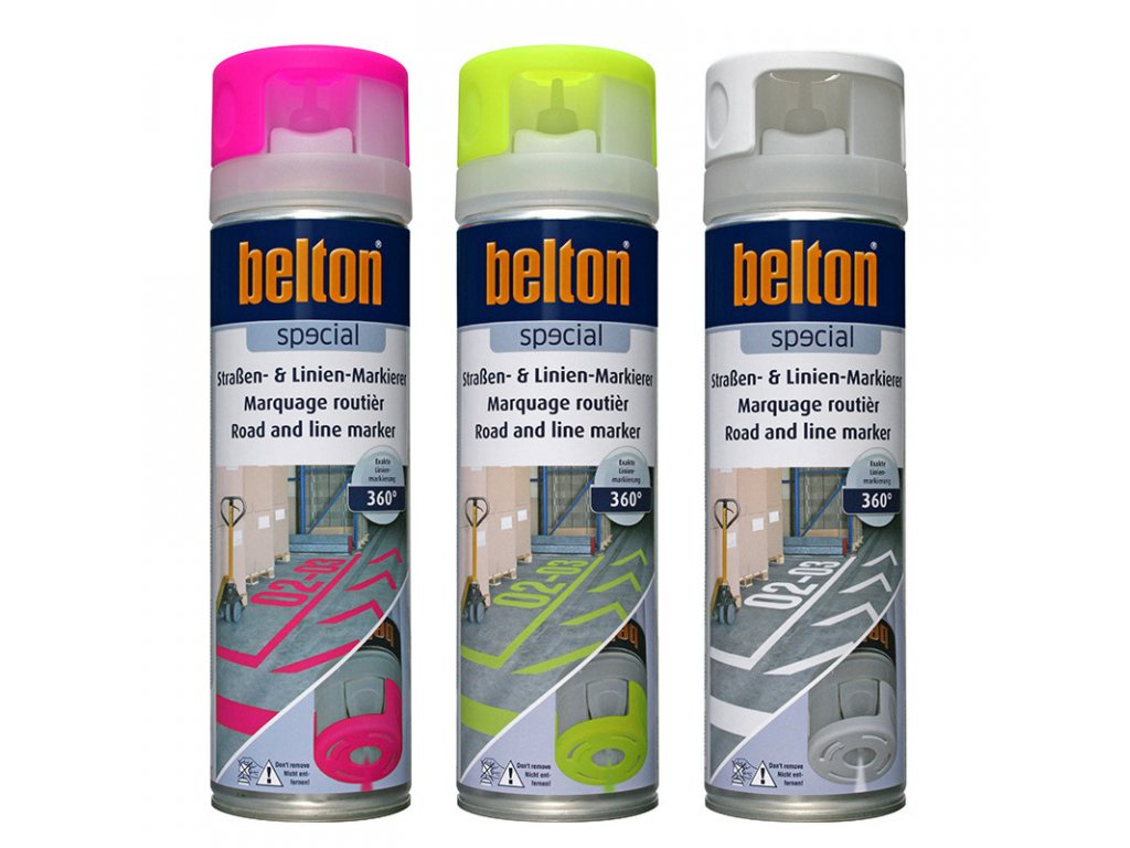 Značkovací sprej značky Belton výrobce kwasny, který je nabízen v objemu 500 ml ve 2 reflexních odstínech a bílé. Speciální 360° ventil umožňuje aplikaci barvy na vodorovné i svislé plochy. Sprej je tak vhodný pro dopravní značení, pro značení při stavebních pracích, sportovních akcích a podobně. Barva má výbornou přilnavost a může být aplikována i na prašné a nezpevněné povrchy, savé i nesavé. Se sprejem je možné pracovat i nad hlavou aniž by došlo k znečištění okolí. Rychleschnoucí barva na bázi kombinace speciálních pojiv s výraznými, svítícími odstíny a přesnou linkou. Barva je dokonale tvrdá po 12 hodinách a odolává povětrnostním vlivům na betonu, asfaltu a podobně. Na trávníku, sněhu, prachu, štěrku a písku je stopa trvalá dle okolností.