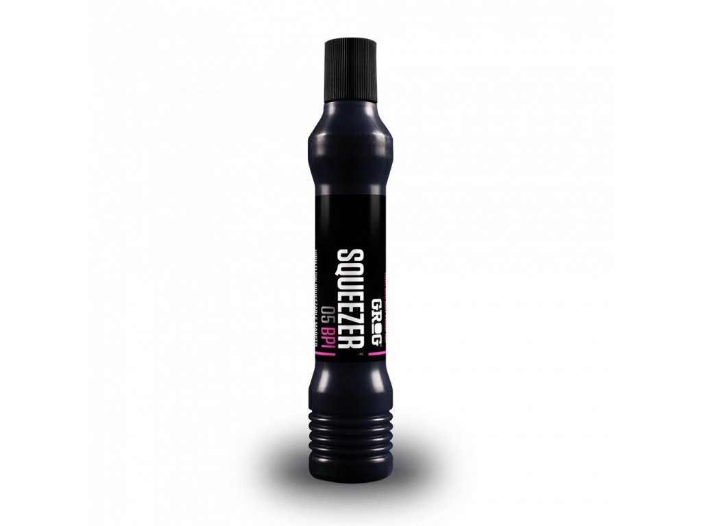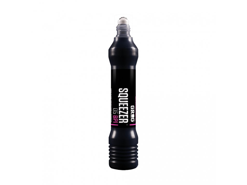 Squeezer italského výrobce Grog s tenkým hrotem šíře 5 mm a se speciální náplní na alkoholové bázi Buff proof ink, která je výjimečná svojí odolností vůči odstranění a povětrnostním vlivům. Stopa je po zaschnutí vysoce permanentní a vpije se do porézních materiálů. Tělo squeezeru je z velice měkkého plastu, čímž je umožněna regulace průtoku barvy hrotem. Díky opravdu tenké 5 mm stopě je možné docílit poměrně jemných linek. Doporučujeme psát na jemné a čisté povrchy. Squeezer je vybaven uzavíracím systémem pro ochranu před odkapávající barvou a tzv. antidrip okrajem. Tato produktová řada nabízí 4 barevné odstíny a squeezery je možné opětovně naplnit, či vyměnit hrot. Objem náplně v tomto squeezeru je 45 ml.