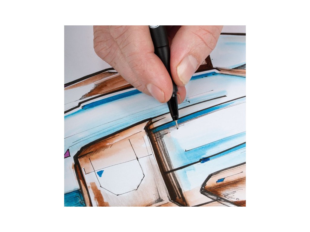 Pro skicy, náčrty, obtahy, školu nebo jako jednoduchý fineliner. Blackliner Made in Germany obsahuje černý archivní inkoust na vodní bázi a je odolný vodě, chemii a vyblednutí! BLACKLINER Set 3 obsahuje 4 fixy v sestavě: Round kulatý, Chisel zkosený, Calligraphy kaligrafický, Brush S pružný. Díky funkci "Cap off" je liner chráněný před vyschnutím po dobu 90-180 minut. Fix má matný povrch proti klouzání při používání.