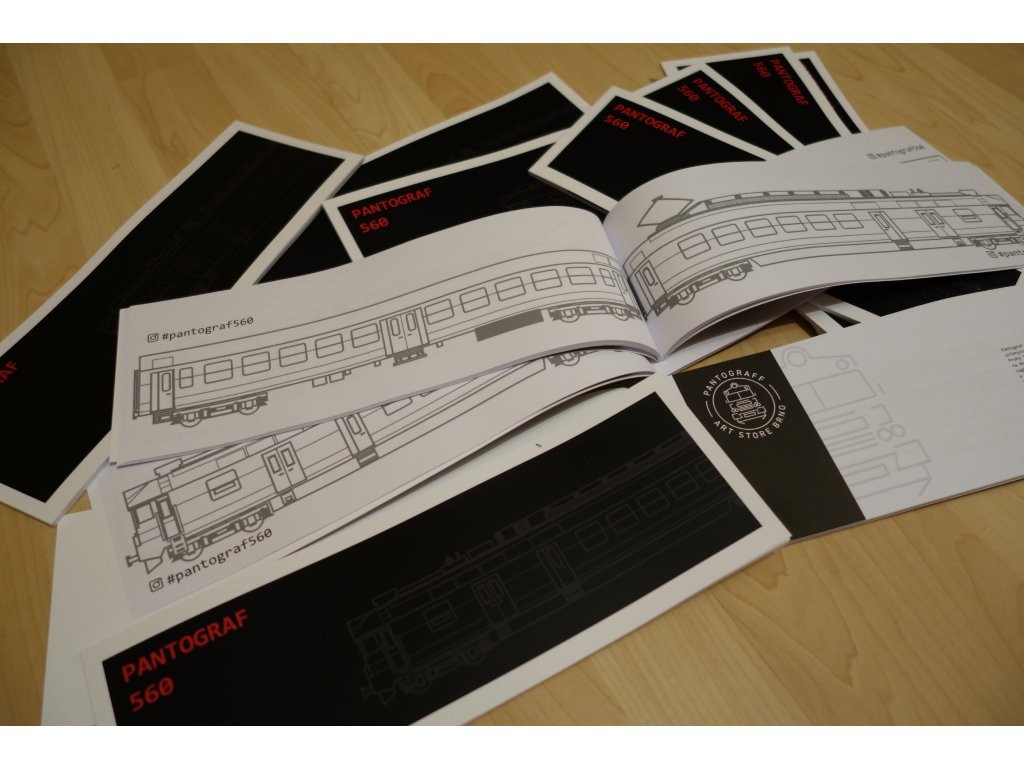 Kniha s předpřipravenými vagóny pantografu řady 560. Sešit obsahuje 48 stran formátu 10 x 30 cm, přičemž dvoustránky na sebe plynule navazují. Je tak možné malovat na obě strany a využít tak maximálně formát dvoustrany 10 x 60 cm. Polovina obsahu ma lokomotivu vlevo, druhá polovina potom vpravo. Kvalitní lepená vazba a desky, které chrání sešit před pomačkáním. Papír uvnitř sešitu je gramáže 100g/m2.