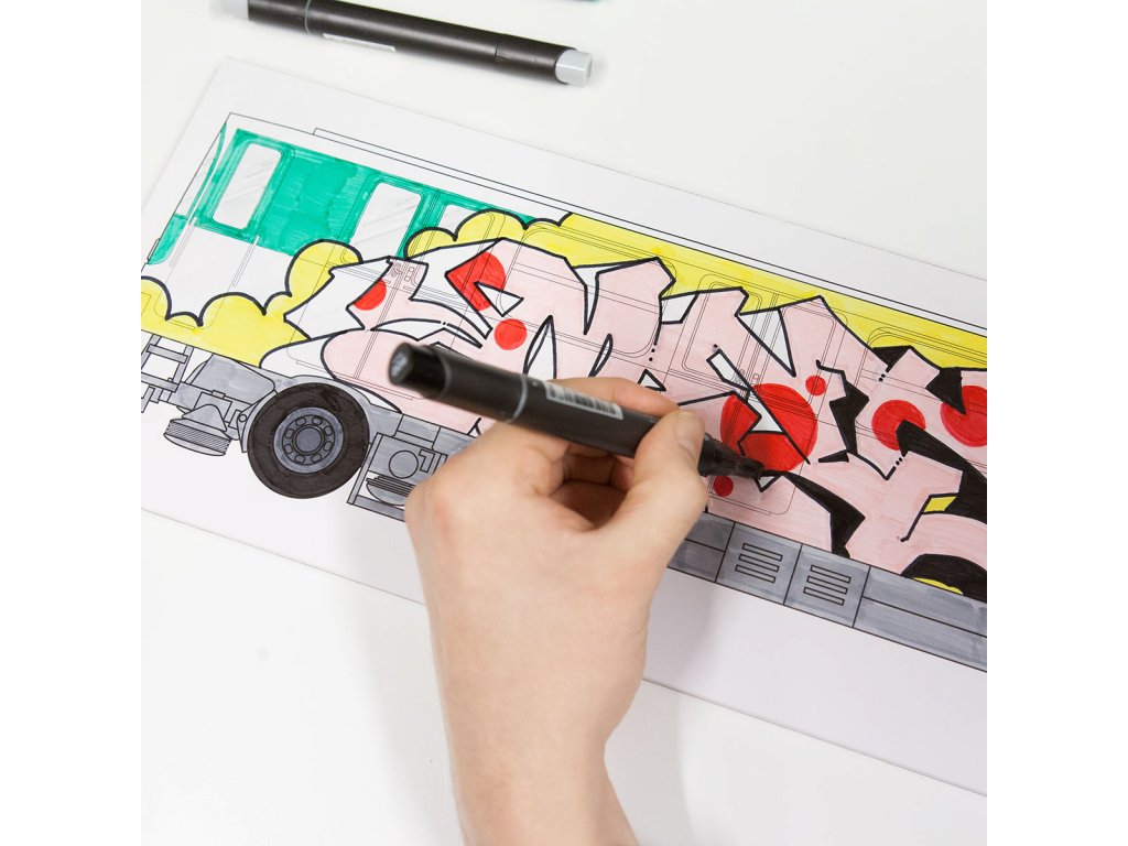 Blok s detailním technickým nákresem kultovních vozů pařížského metra MP73. Blok obsahuje 40 listů ve formátu 59,4 x 18 cm s odolným papírem gramíže 170 g / m2, který je ideální pro tužky i fixy. Extra velký formát usnadňuje vytváření podrobných výkresů. Jednotlivé listy jsou přilepeny nahoře a papíry můžete snadno a bezpečně oddělit. Formát XL je také ideální pro rámování a zavěšení na zeď.