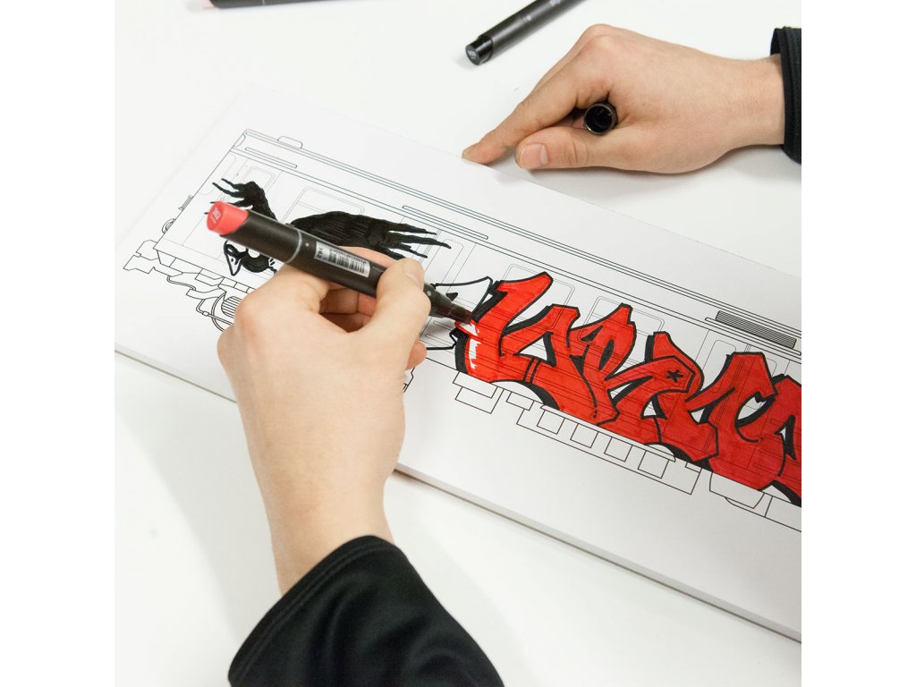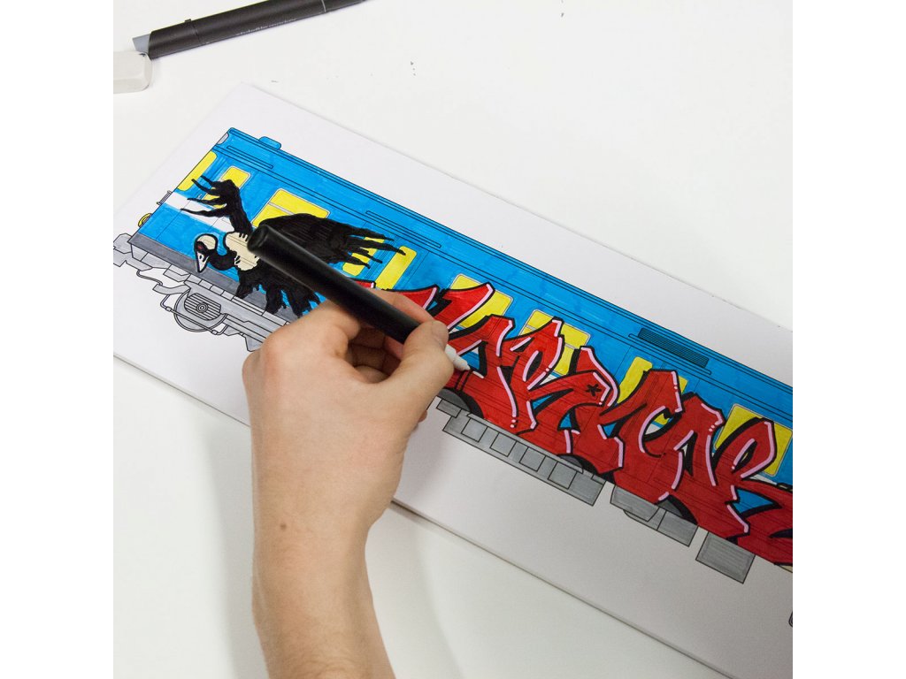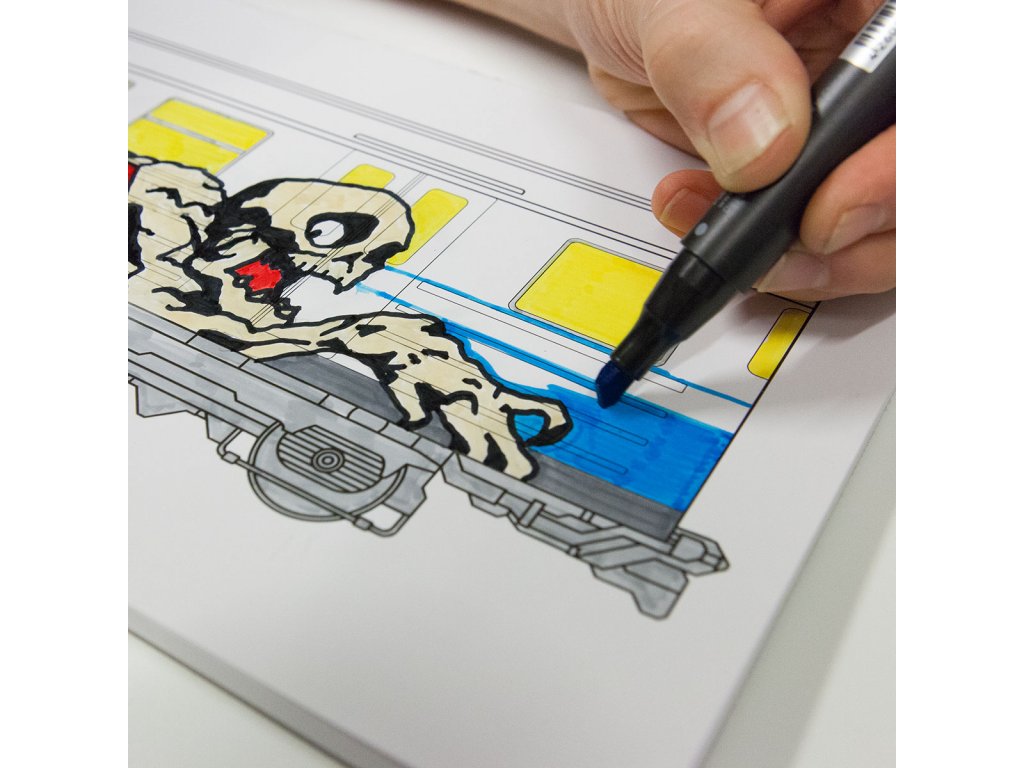 Blok s detailním technickým nákresem starých vozů stockholmského metra. Blok obsahuje 40 listů ve formátu 59,4 x 18 cm s odolným papírem gramíže 170 g / m2, který je ideální pro tužky i fixy. Extra velký formát usnadňuje vytváření podrobných výkresů. Jednotlivé listy jsou přilepeny nahoře a papíry můžete snadno a bezpečně oddělit. Formát XL je také ideální pro rámování a zavěšení na zeď.