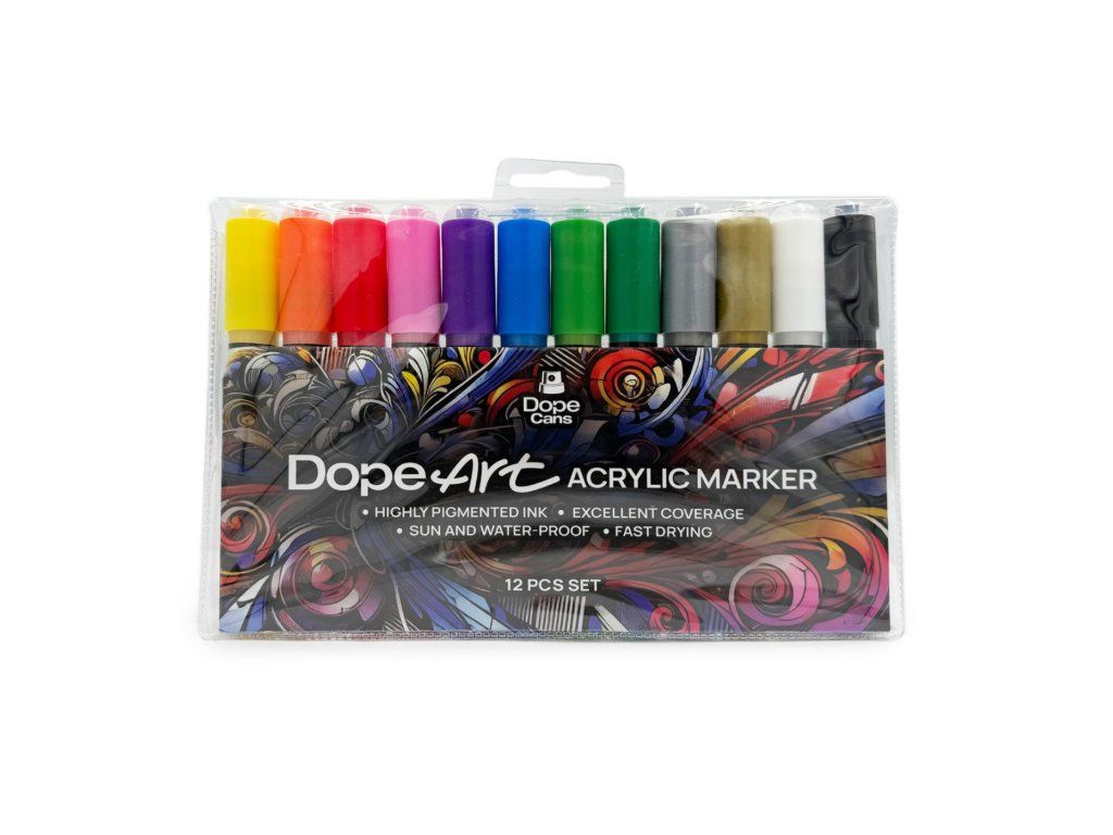 Sada 12 akrylových fixů DOPE ART o velikosti hrotu 4–6 mm. Fix je ideální pro kreativní projekty na různých površích a má vyměnitelný hrot: na jednom konci kulatý a na druhém seříznutý. Díky tomu se fix přizpůsobí vašim potřebám – ať už jde o přesné detaily nebo o pokrytí větších ploch. Sada obsahuje barvy zobrazené na fotografii.
