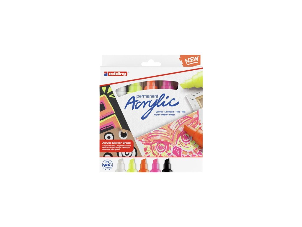 Edding 5000 Acrylic neon 5 set 3 neonové barvy + černá a bílá