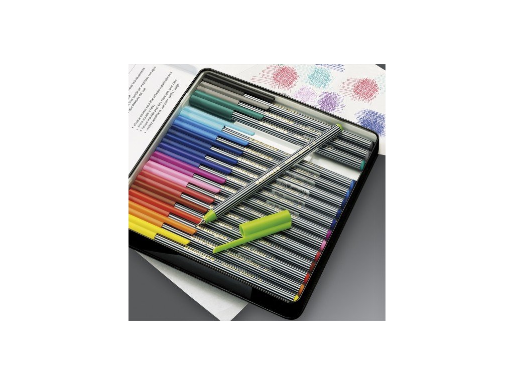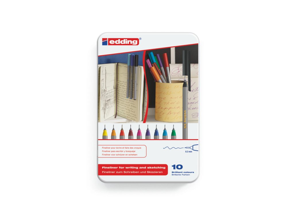 Fineliner Edding 55 je velice jemný popisovač určený pro psaní a vytváření výkresů, písemností, skic, módních návrhů a působivých grafických návrhů. Popisovač je vybaven kulatým hrotem v kovové objímce a obsahuje inkoust rozpustný ve vodě. Sady jsou dodávány v kovové krabičce.