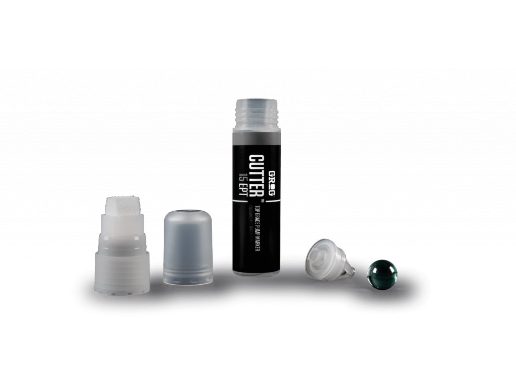 Prázdný fix italského výrobce grog se zkoseným hrotem šíře 15 mm. Hrot Quick flow s 15 mm stopou je optimalizován pro větší průtok barvy hrotem a fix je tedy vhodný na práci, u které je žádoucí stékání barvy po vodorovné ploše. Zároveň je fix vybaven systémem ochrany proti vytékání barvy a je tedy možné fix bez obav nosit kdekoliv při sobě, aniž by došlo k nehodě. Fix je možné opětovně naplnit a dokoupit do něj náhradní hroty. Objem fixu je 50 ml.