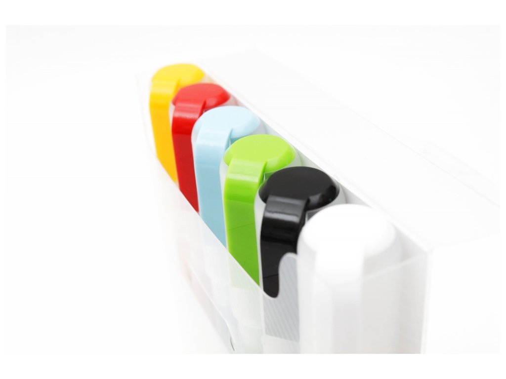 Sada 6 ks fixů s šířkou hrotu 0,7 mm německého výrobce Montana. Náplň fixů je akrylová, pigment má velice dobré krycí vlastnosti a je vhodný na téměř všechny materiály od plastů, přes kov, porcelán, sklo, dřevo, papír, kůži, denim a další textil. Díky hrotu s 0,7 mm stopou je možné docílit velmi přesných tahů. Barvy navzájem perfektně kryjí a po zaschnutí jsou matné, vodě a oděru odolné. Díky opravdu vysoké koncentraci barevného pigmentu jsou velice kontrastní, zejména na tmavých materiálech a nepropouští světlo. Fix je vybaven optimalizovaným ventilem pro plynulou distribuci barvy do hrotu a vyniká svojí vysokou spolehlivostí. Fix je možné opakovaně naplnit, či k němu dokoupit náhradní hrot. Ředit je možné vodou, či acetonem. Náplň je bez obsahu xylenu a bez zápachu. Fixy této řady lze použít jak v interiéru, tak v exteriéru, kde je pro vyšší odolnost doporučujeme zafixovat bezbarvým lakem.