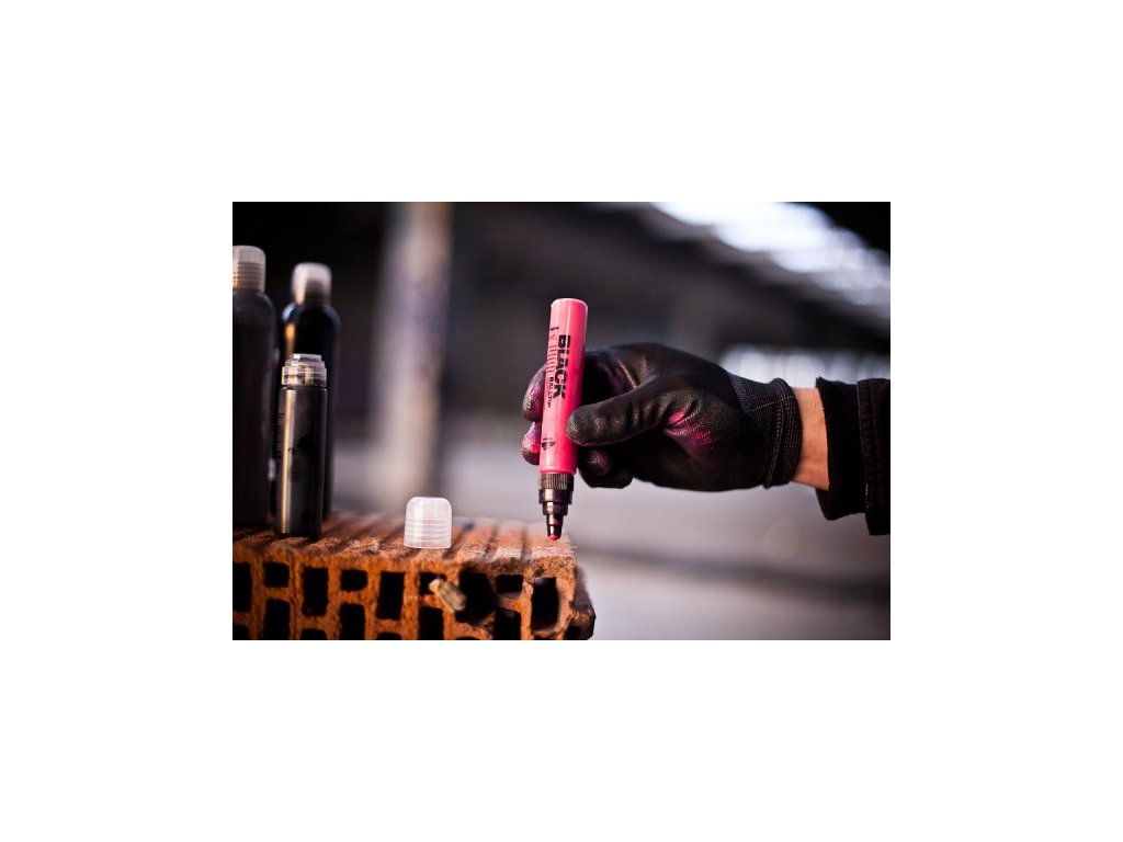 Prázdný popisovač německého výrobce Montana s kovovým hrotem šíře 6 mm. Hrot je řešen kovou kuličkou, která při otáčení propouští náplň a umožňuje psaní i na hrubé a porézní materiály. Tělo squeezeru je z velice měkkého plastu, čímž je umožněna regulace průtoku barvy hrotem. Popisovač lze opětovně naplnit - objem náplně 30ml.