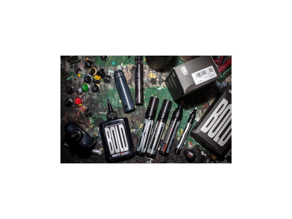Černá náhradní náplň do fixů německého výrobce Montana. Náplň je lihová, nízko-viskózní a extrémně odolná. Pigment má velice dobré krycí vlastnosti a je vhodný na téměř všechny materiály od plastů, přes kov, porcelán, sklo, dřevo a další materiály. Díky opravdu vysoké koncentraci černého pigmentu je stopa velice kontrastní. Receptura řady Bold je založena na hesle "mady to stay", čili prioritou je opravdou velká výdrž a odolnost. Díky nízko-viskózní náplni je doporučeno používat při použití rukavice! Tělo fixu je z hliníku.