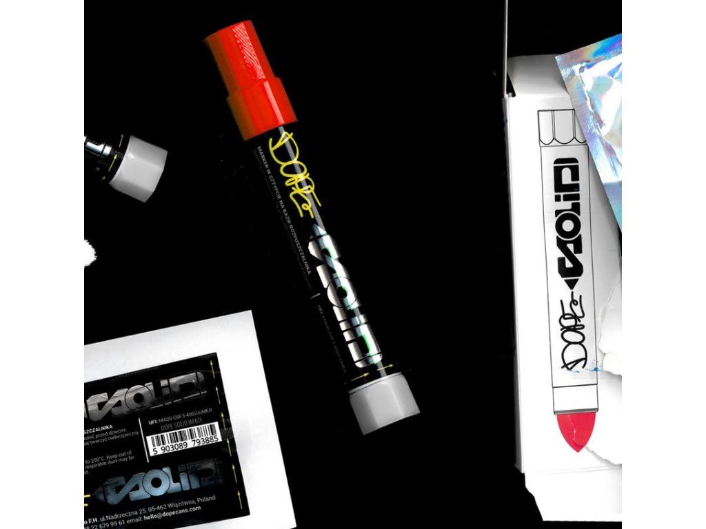 Dope Solid je popisovač s vysoce permanentní voskovu tuhou, která má silné krycí účinky, je stálá na světle, nesmazatelná a odolná proti vodě po zaschnutí. Je obzvláště vhodný k popisování hrubých povrchů, špinavých povrchů, rezavých kovů a míst vystavených povětrnostním vlivům. K dispozici je v 5 barevných variantách.