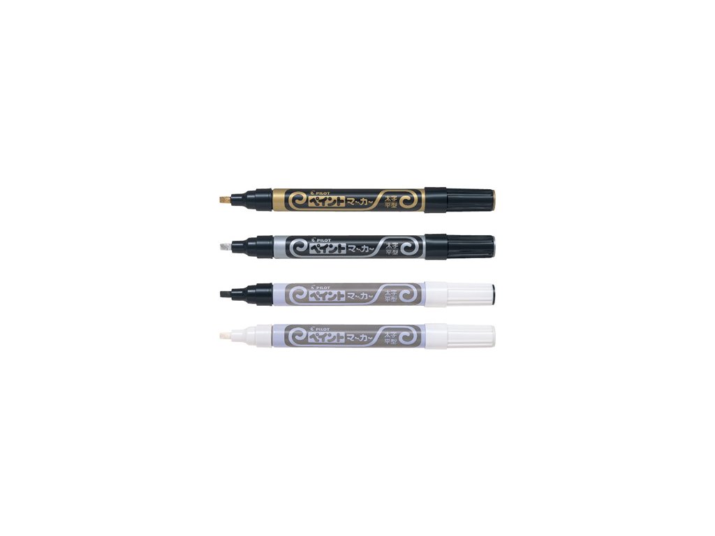 Fixy na olejové bázi se syntetickým lakem a hrotem šíře 4 mm. Velmi odolný lak a výborné krycí vlastnosti. V nabídce je stříbrná, zlatá, černá a bílá s lesklým výsledným efektem. Jsou vhodné pro značení a popisování téměř všech materiálů, od kovu, přes plast, dřevo, papír až po kůži. Díky zkosenému hrotu jsou ideální pro kaligrafii a krasopis.