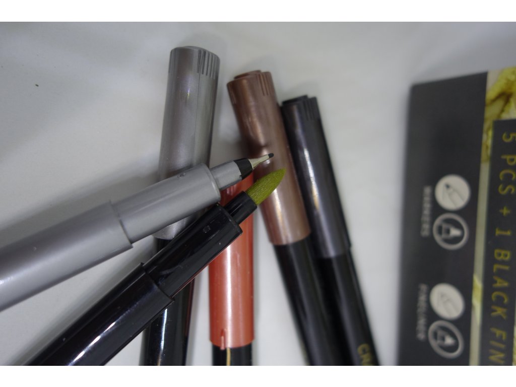 Sada fixů na vodní bázi, které mají štětcový hrot. Sada obsahuje 5 metalických odstínů a 1 černý linner. Fixy jsou vhodné na krasopis, kaligrafii, zdobení, lettering a další techniky a to na papír.