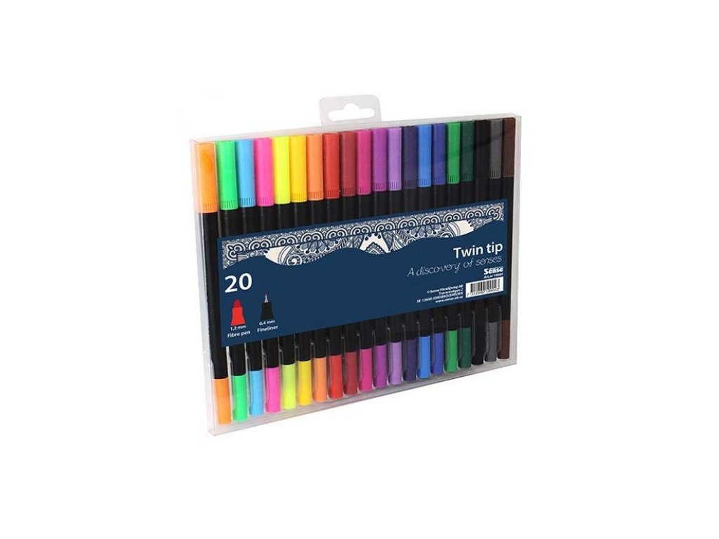 Sada oboustranných fixů obsahující 20 barev. Z jedné strany je hrot typu linner s šířkou stopy 0,4 mm a z druhé strany je klasický hrot šíře 1,2 mm. Fixy jsou na vodní bázi a vhodné pro práce na papír. Dodávány jsou v plastovém, uzavíratelném obalu.