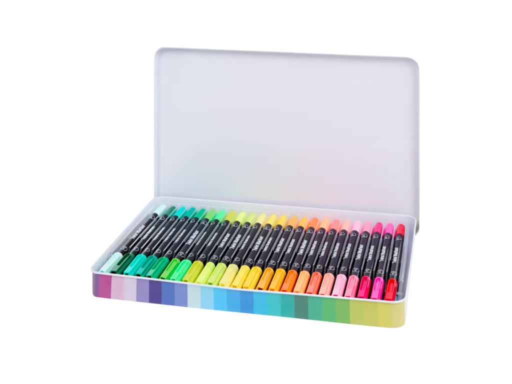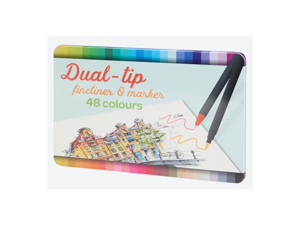 Sada oboustranných fixů obsahující 48 barev. Fix má na jednom konci štětcový hrot a na druhém konci tenký, pevný hrot. Tato kombinace zaručuje pohodlí při práci, kdy je možné jedním nástrojem vytvářet naprosto odlišné stopy a vytvářet tak zajímavé ilustrace. Fixy jsou na bázi vody, tedy bez zápachu a vhodné pro práce na papír. Dodávány jsou v plechovém, uzavíratelném obalu.