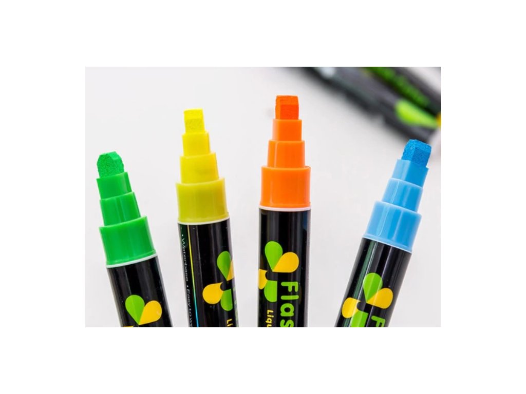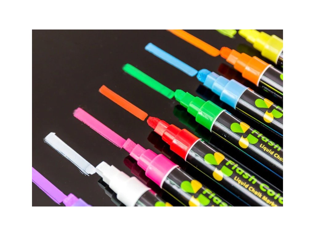 Křídový fix s hrotem šíře 8 mm. Jedná se o vodou ředitelné barvy, jejichž pigment je křídový. Po svém zaschnutí jsou velice snadno smazatelné a jsou tak vhodné pro popisování skla a dalších neporézních materiálů. Po zaschnutí jsou lehce otěru vzdorné, za sucha smazatelné a vodou odstranitelné. Po smazání nezanechávají barevnou stopu. Ideální využití na vývěsní tabule, výlohy apod. Některé fluorescenční odstíny jsou aktivní pod UV světlem.