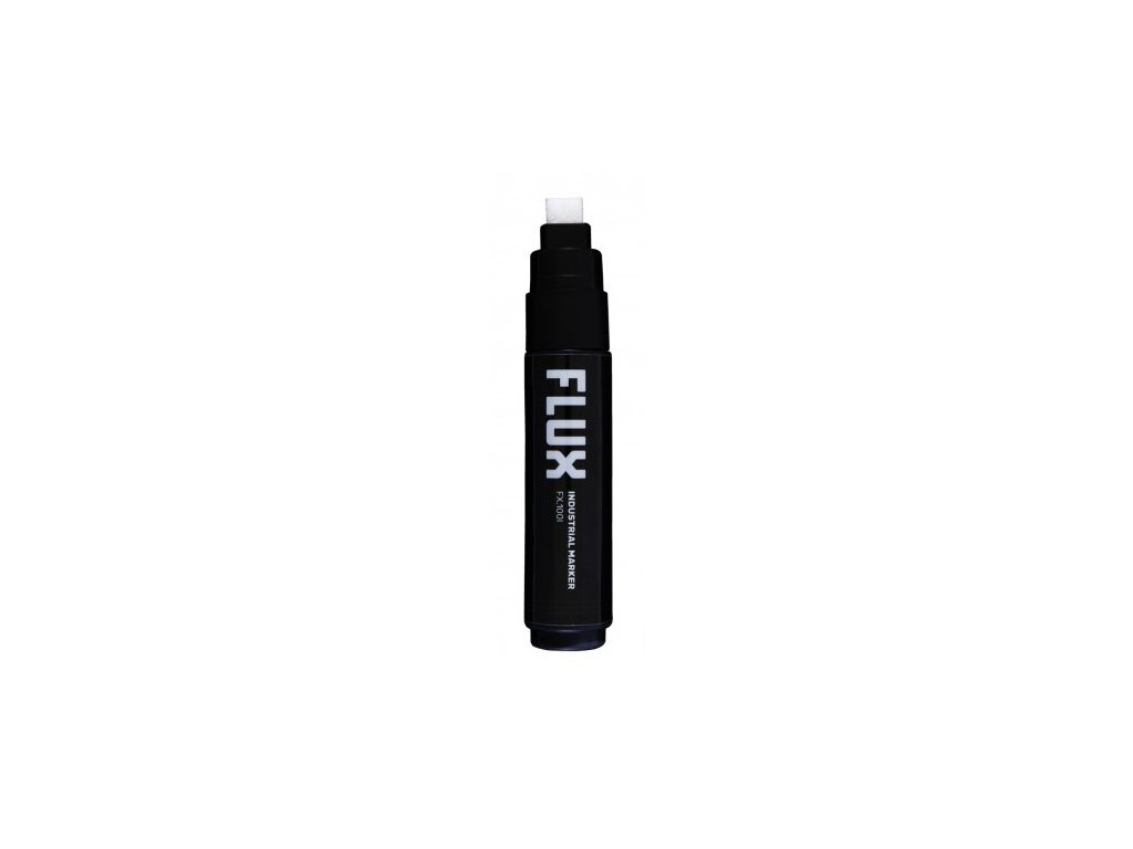 Permanentní fix značky Flux s hrotem šíře 10 mm. Fix obsahuje průmyslovou černou náplň s extrémní odolností. Náplň je na alkoholové bázi s výborními krycími vlastnostmi. Díky industriálnímu využití má barva schopnost se silně vsát do materiálu a je resistentní vůči většině odstraňovačů a čističů.