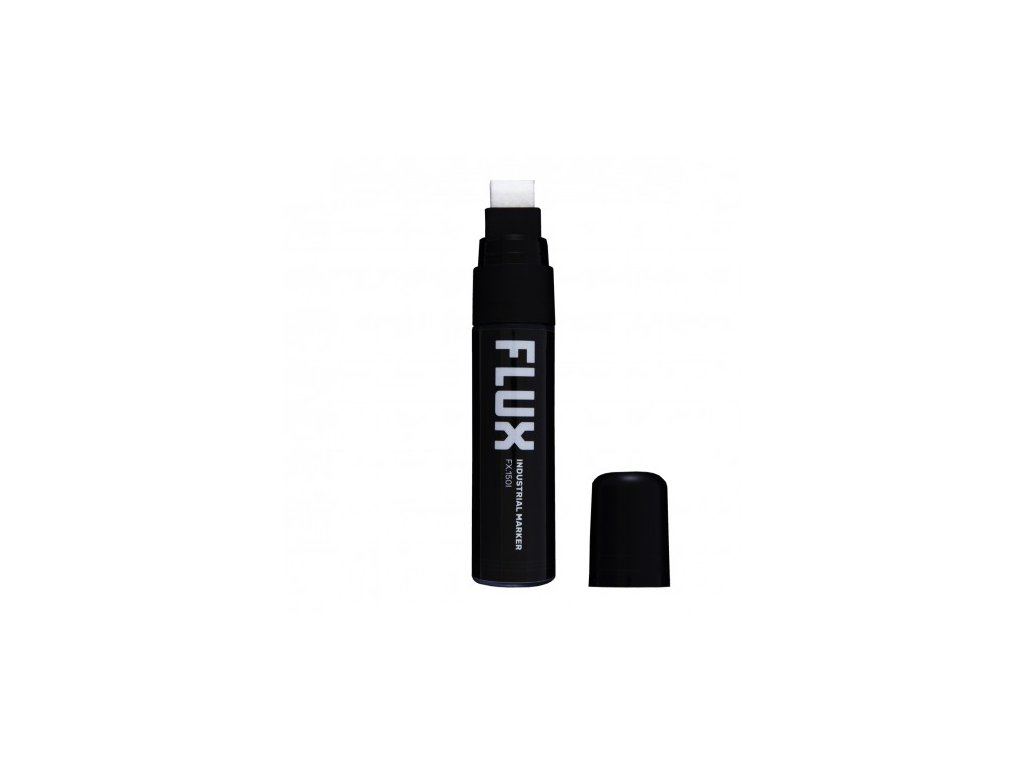Permanentní fix značky Flux s hrotem šíře 15 mm. Fix obsahuje průmyslovou černou náplň s extrémní odolností. Náplň je na alkoholové bázi s výborními krycími vlastnostmi. Díky industriálnímu využití má barva schopnost se silně vsát do materiálu a je resistentní vůči většině odstraňovačů a čističů.
