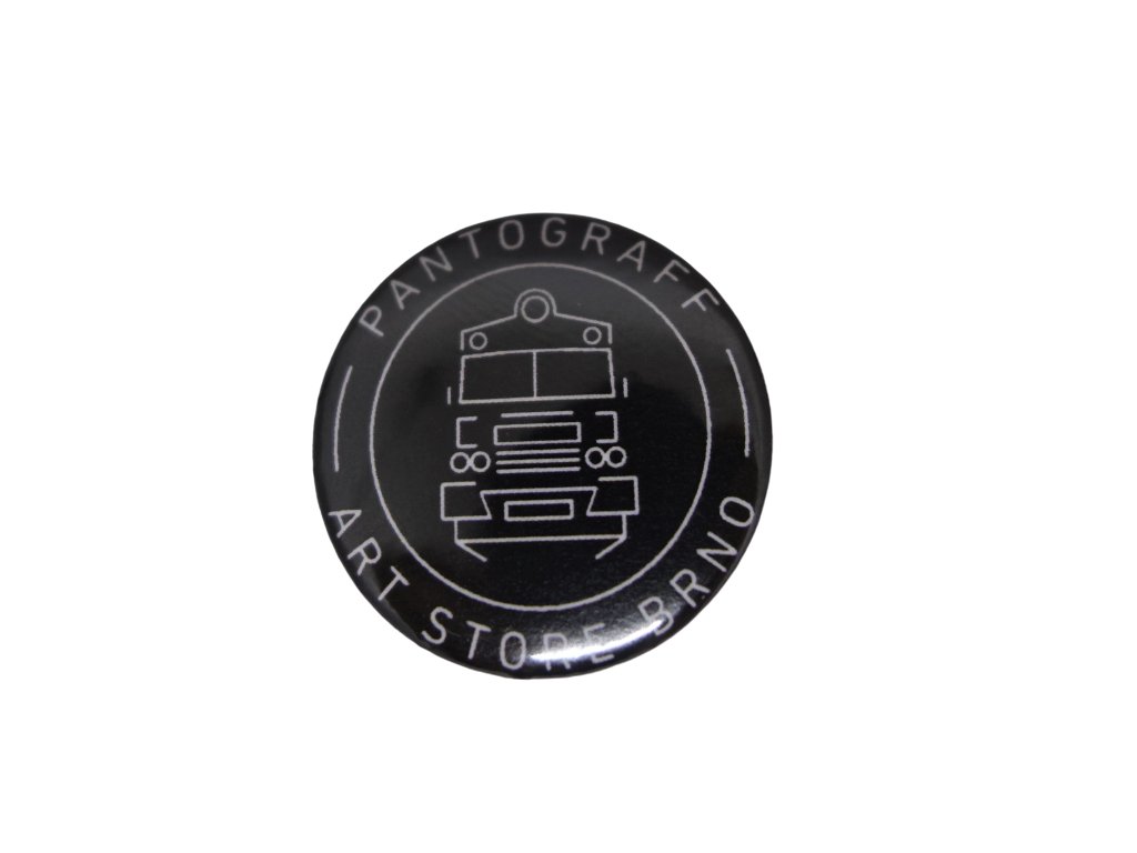 Kovová placka s logem Pantograff art store, které navrhl graffiti umělec OLIVER. Průměr placky 25 mm, zezadu spínací špendlík pro uchycení.