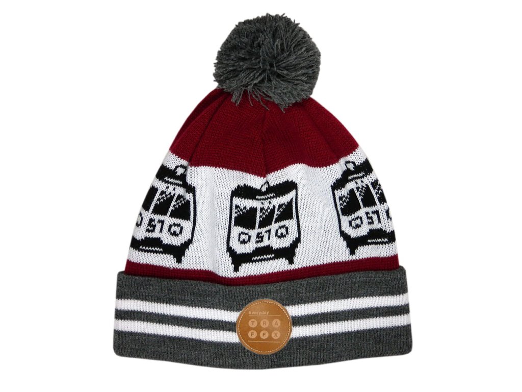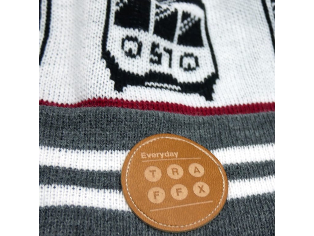 Stylová zimní čepice s bambulí a designem s motivy elektrické jednotky EM-57 polských železnic. Zepředu je navíc našitý štítek s logem Traffx.