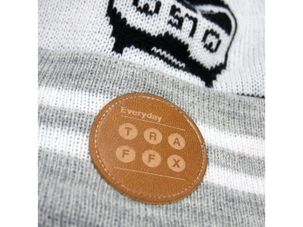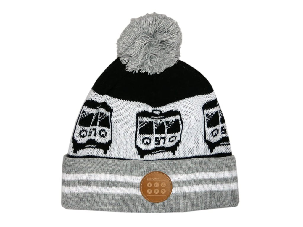 Stylová zimní čepice s bambulí a designem s motivy elektrické jednotky EM-57 polských železnic. Zepředu je navíc našitý štítek s logem Traffx.