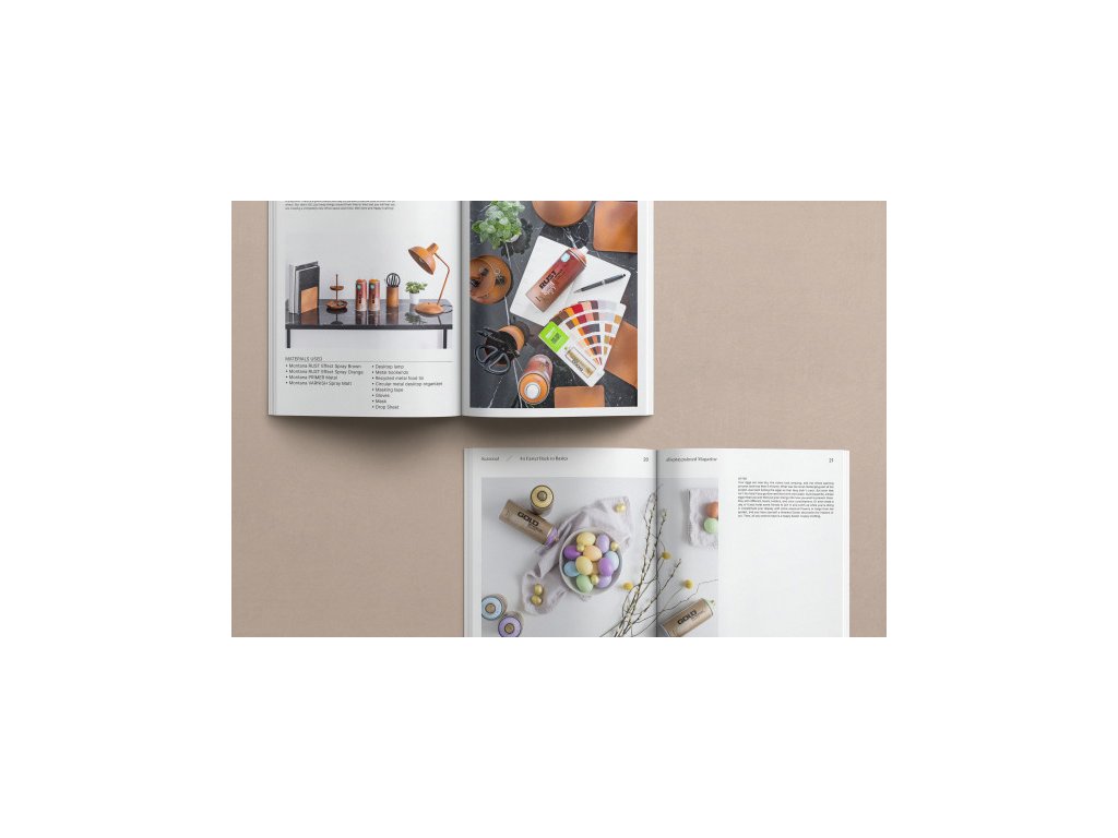 Tento tištěný katalog prací a postupů je dokonalý zdroj inspirace pro všechny kreativce a kutily. Časopis obsahuje tutoriály k využití nejrůznějších efektových sprejů, díky kterým je možné vytvořit originální dekorace, dárky, či nejrůznější zdobení a barvení všemožných předmětů.