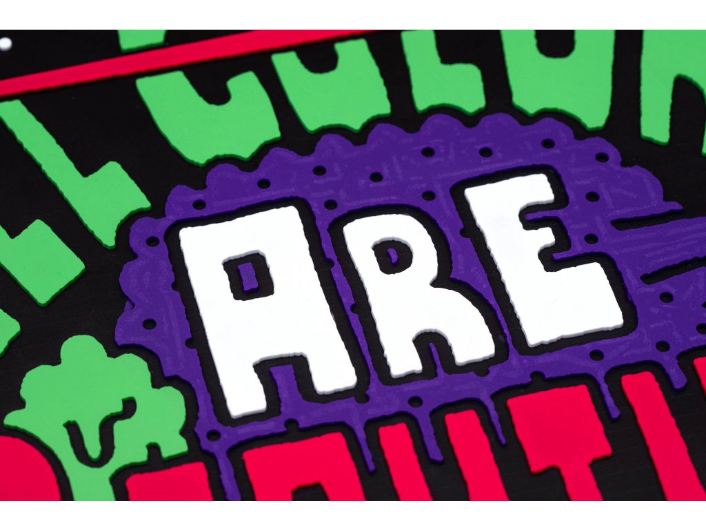 Gumová rohožka z PVC s designem "All colors are beautiful" od umělce Max Solca v rozměru 40x60 cm. Stylový doplněk přede dveře s praktickým významem.
