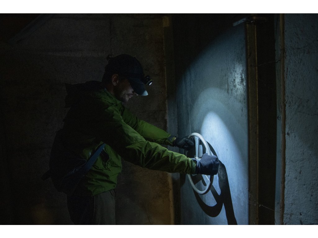Svítilna typu čelovka od značky MTN, která nabízí maximální výkon 400 lumenů a pět různých poloh světla s možností červeného světla pro větší diskrétnost. Je napájena USB dobíjecí baterií, je voděodolná a má nastavitelný elastický pásek na hlavu.