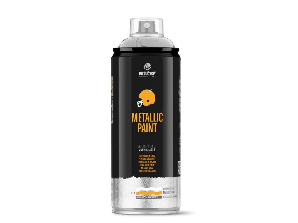Řada Metalic španělského výrobce MTN nabízí spreje s kovovým efektem pro všestranné využití na nejrůznější povrchy jako kov, kámen, dřevo, plast, papír a další. Díky své výborné přilnavosti k materiálu je vhodná nejen na dekorace. Pigment je na bázi alkydových pryskyřic s velice rychlým schnutím a perfektními krycími vlastnostmi. Řada Metalic nabízí 9 lesklých odstínů s perleťovým efektem. Na spreje je možné použít různé trysky pro docílení požadované šíře a vlastností stopy. Barva je odolná vůči povětrnostním vlivům a má UV ochranu, která zaručuje barevnou stálost pigmentu. Tu výrobce garantuje až na 10 let v závislosti na lakovaném materiálu. Technologie plnění a ventilku zaručuje stálost i za extrémních teplot, mrazu i horka. Lze použít na plast, dřevo, kov, papír, beton, kůže a většinu dalších materiálů. Pro zajištění dlouhodobého svěžího vzhledu a pro zvýšení odolnosti doporučujeme barvu zalakovat bezbarvým lakem.