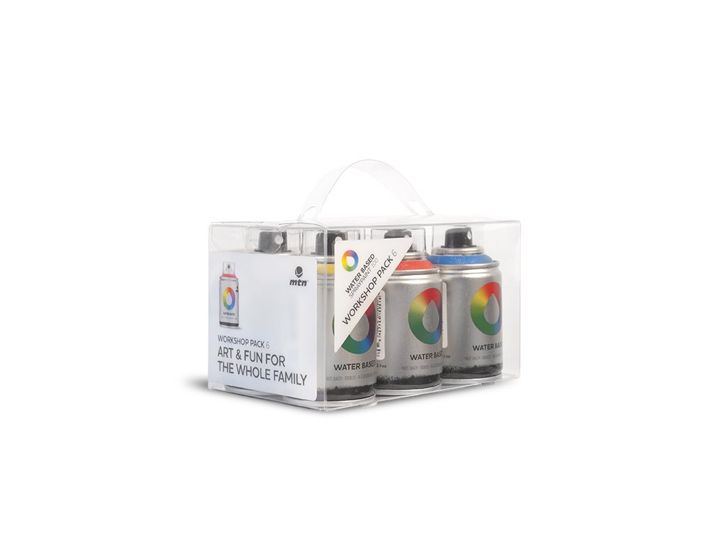 Spreje řady Water Based španělského výrobce MTN jsou výjimečné svými vlastnostmi, neboť mají výborné krycí vlastnosti, skvělou funkčnost a díky vodní bázi jsou téměř bez zápachu. Spreje obsahují asi 1% ředidla, díky čemuž velice rychle schnou a mimo interiér je možné je použít i ve venkovních podmínkách. Spreje mají nízký tlak a nabízí 87 matných odstínů, stříbrnou a zlatou. Díky nízkému tlaku a kompaktnějšímu balení jsou spreje vhodné pro práci s dětmi, ovšem při dodržení všech bezpečnostních opatření. Na spreje lze nasadit jakoukoliv trysku pro docílení požadované tloušťky stopy. Lze použít na plast, dřevo, kov, papír, beton, kůže a většinu dalších materiálů. Pro zajištění dlouhodobého svěžího vzhledu a pro zvýšení odolnosti doporučujeme barvu zalakovat bezbarvým lakem.