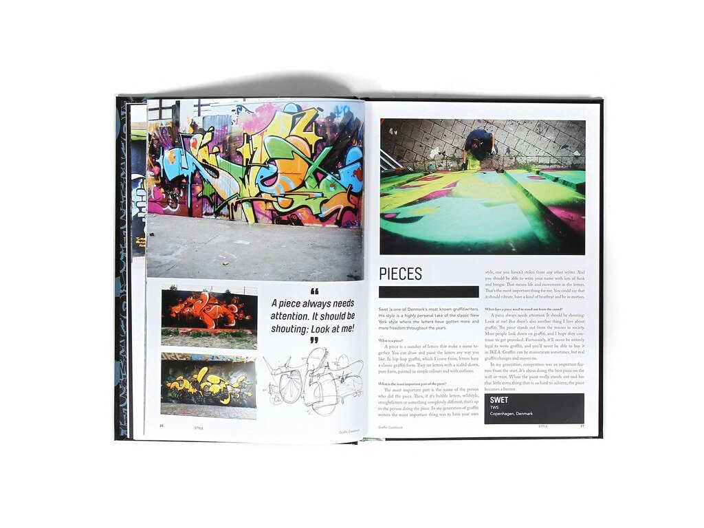Graffiti Cookbook vás vezme na cestu kolem světa a prozradí tipy a triky od autorů, jako jsou Swet, Jurne, Rosy, Skil, Egs, Mad C a mnoho dalších. Tato 140stránková kniha vám poskytne pohled do zákulisí a je zdrojem inspirace pro všechny vyznavače graffiti kultury.
