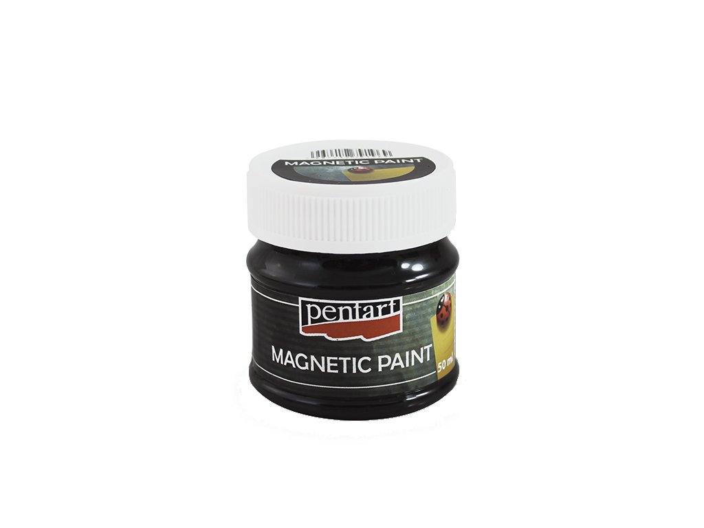 Magnetická barva značky PENTART na vodní bázi, které po svém vyschnutí získavají magnetičnost. Barvu je možné použít i jako tabulovou barvu. Je přebarvitelná akrylovými barvami do libovolného odstínu aniž by ztratila magnetičnost. Objem: 50 ml, černá barva.