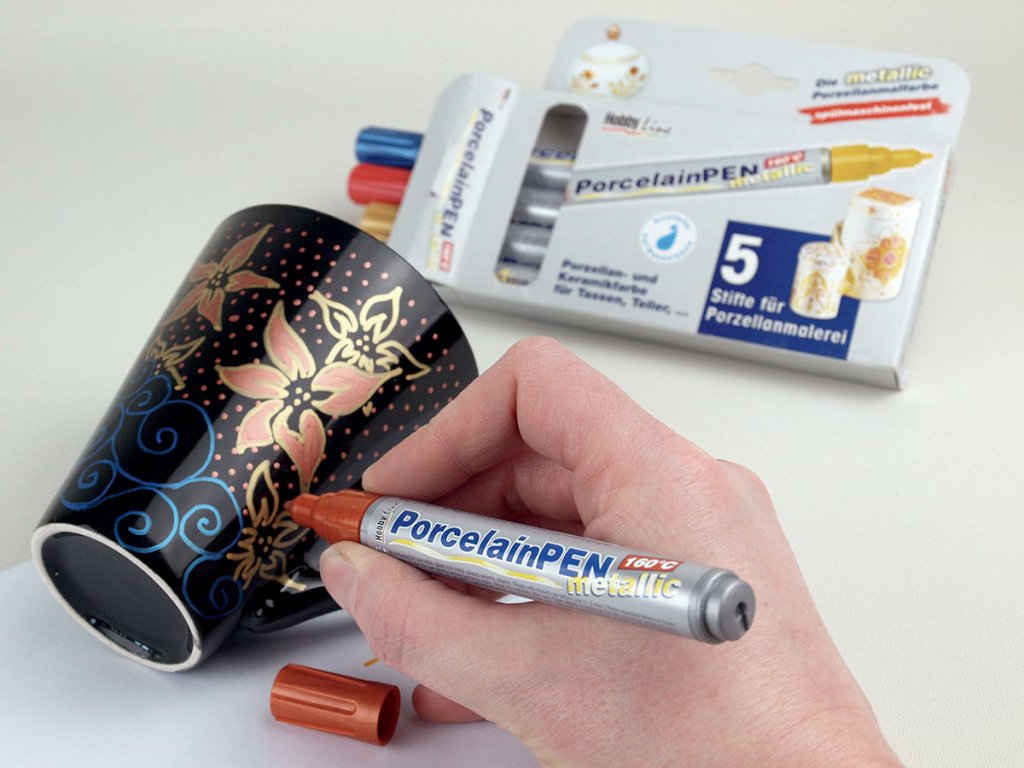 Fixy na sklo, keramiku a porcelán německé značky Kreul. Fix má kulatý hrot 2 mm, pumpovací systém pro distribuci barvy do hrotu, dobré krytí a lesklé metalické odstíny. Doba schnutí nejméně 4 hodiny, případně 90 min v kuchyňské troubě při 160°C. Po vytvrzení je možné mýt v myčce.