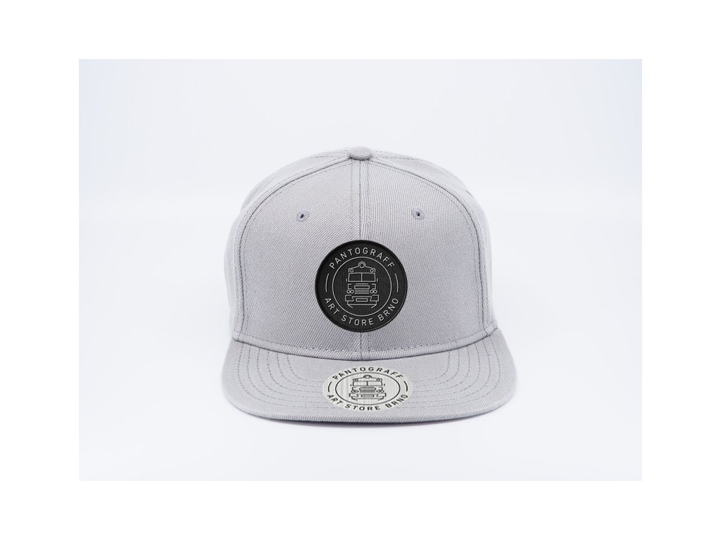 Čepice typu snapback s našitým logem Pantograff vpředu a vyšitým tagem vzadu.