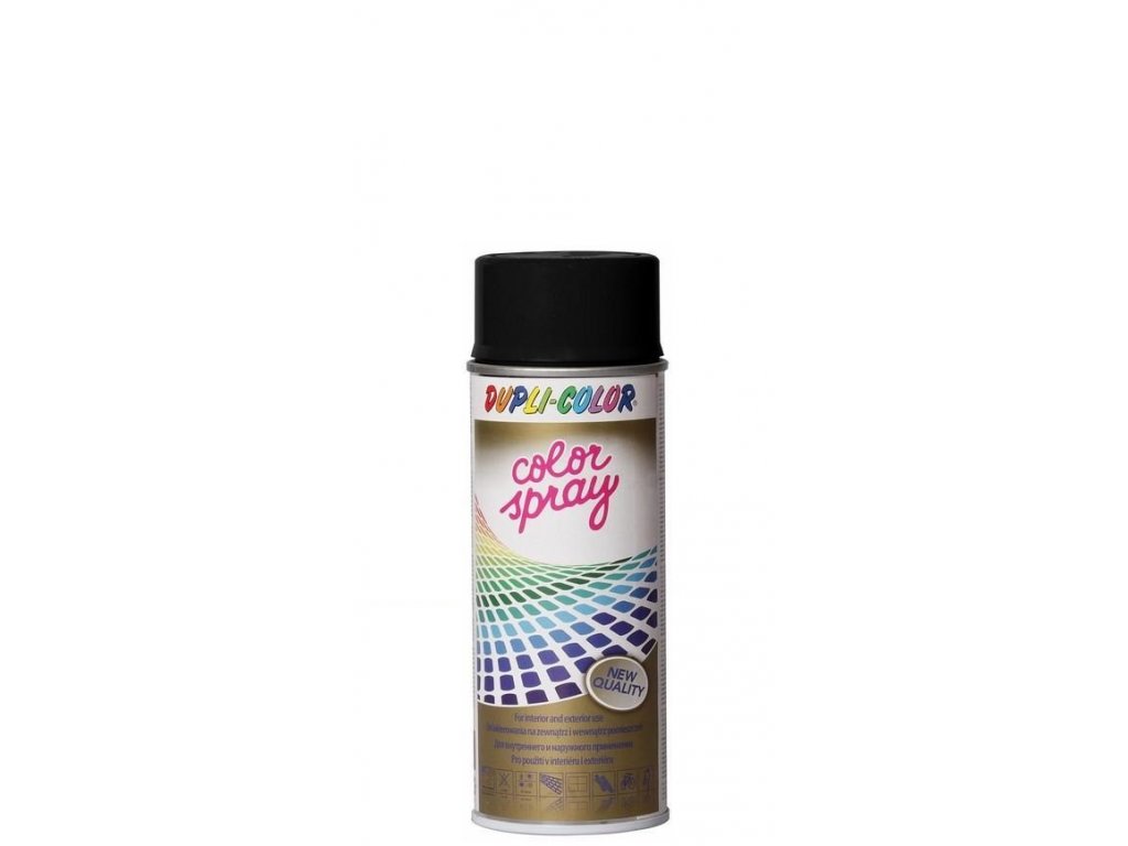 Černá barva ve spreji značky Dupli color v kompaktním balení 150 ml. Barva je vhodná na většinu materiálů, jako kov, dřevo, papír, plast a další.