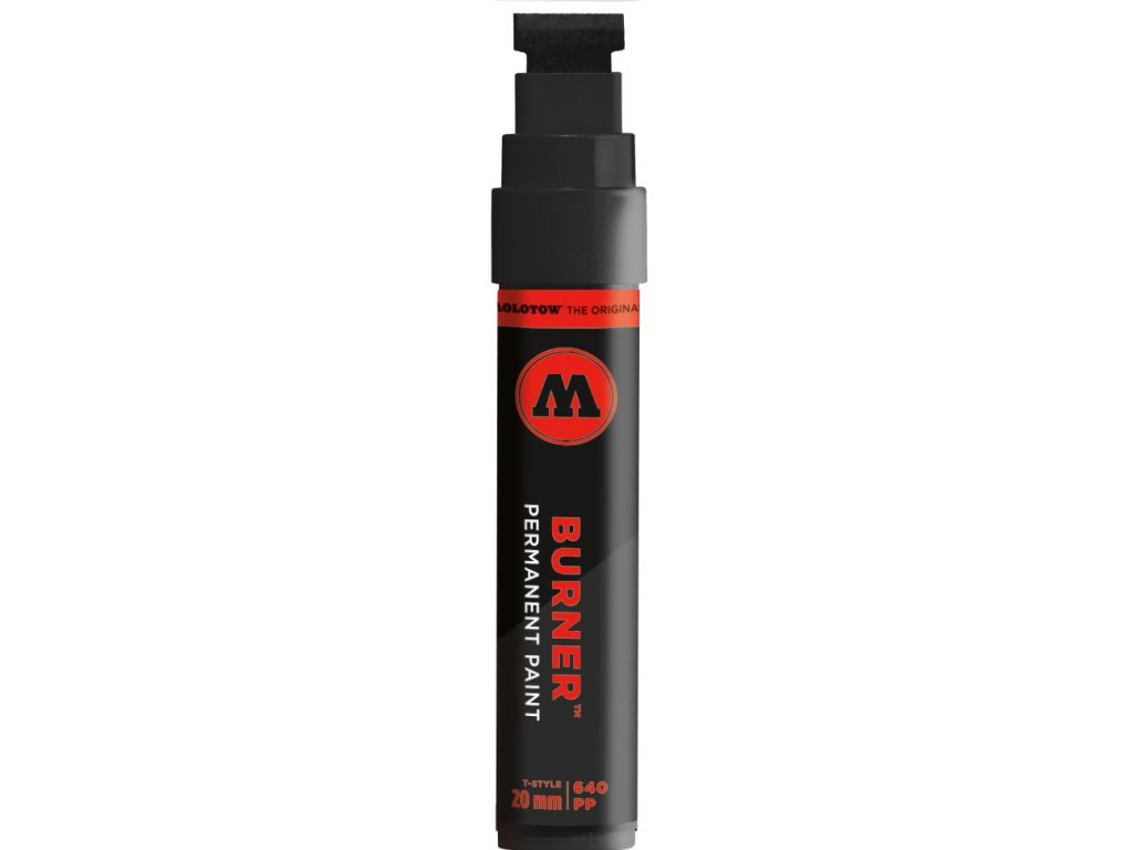 Fix s hrotem šíře 20 mm německého výrobce Molotow. Náplň je lihová, pigment je permanentní a vhodný na téměř všechny materiály od plastů, přes kov, porcelán, sklo, dřevo, papír, po kůži, a další materiály. Díky hrotu s 20 mm stopou je možné docílit silných tahů, takže je fix vhodný například pro kaligrafii, tagy, či pokrytí velkých ploch. Barvy dobře kryjí a po zaschnutí jsou vodě a oděru odolné. Fix je vybaven optimalizovaným ventilem pro plynulou distribuci barvy do hrotu a vyniká svojí vysokou spolehlivostí. Fix je možné opakovaně naplnit, či k němu dokoupit náhradní hrot. Náplň je bez obsahu xylenu a bez rozpouštědel. Fixy této řady lze použít jak v interiéru, tak v exteriéru.