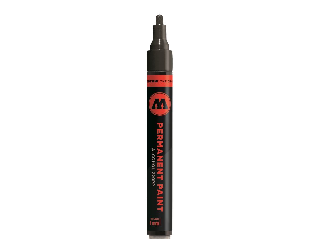Fix s hrotem šíře 4 mm německého výrobce Molotow. Náplň je lihová, pigment má velice dobré krycí vlastnosti a je vhodný na téměř všechny materiály od plastů, přes kov, porcelán, sklo, dřevo, papír, kůži, a další materiály. Barvy dobře kryjí a po zaschnutí jsou matné, vodě a oděru odolné. Fix je vybaven optimalizovaným ventilem pro plynulou distribuci barvy do hrotu a vyniká svojí vysokou spolehlivostí. Fix je možné opakovaně naplnit, či k němu dokoupit náhradní hrot. Náplň je bez obsahu xylenu a bez rozpouštědel. Fixy této řady lze použít jak v interiéru, tak v exteriéru, kde je pro vyšší odolnost doporučujeme zafixovat bezbarvým lakem.