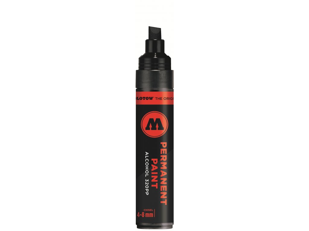 Fix s hrotem šíře 8 mm německého výrobce Molotow. Náplň je lihová, pigment má velice dobré krycí vlastnosti a je vhodný na téměř všechny materiály od plastů, přes kov, porcelán, sklo, dřevo, papír, kůži, a další materiály. Barvy dobře kryjí a po zaschnutí jsou matné, vodě a oděru odolné. Fix je vybaven optimalizovaným ventilem pro plynulou distribuci barvy do hrotu a vyniká svojí vysokou spolehlivostí. Fix je možné opakovaně naplnit, či k němu dokoupit náhradní hrot. Náplň je bez obsahu xylenu a bez rozpouštědel. Fixy této řady lze použít jak v interiéru, tak v exteriéru, kde je pro vyšší odolnost doporučujeme zafixovat bezbarvým lakem.