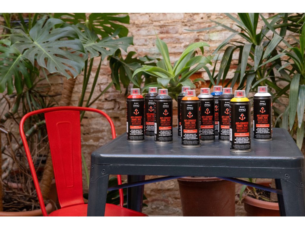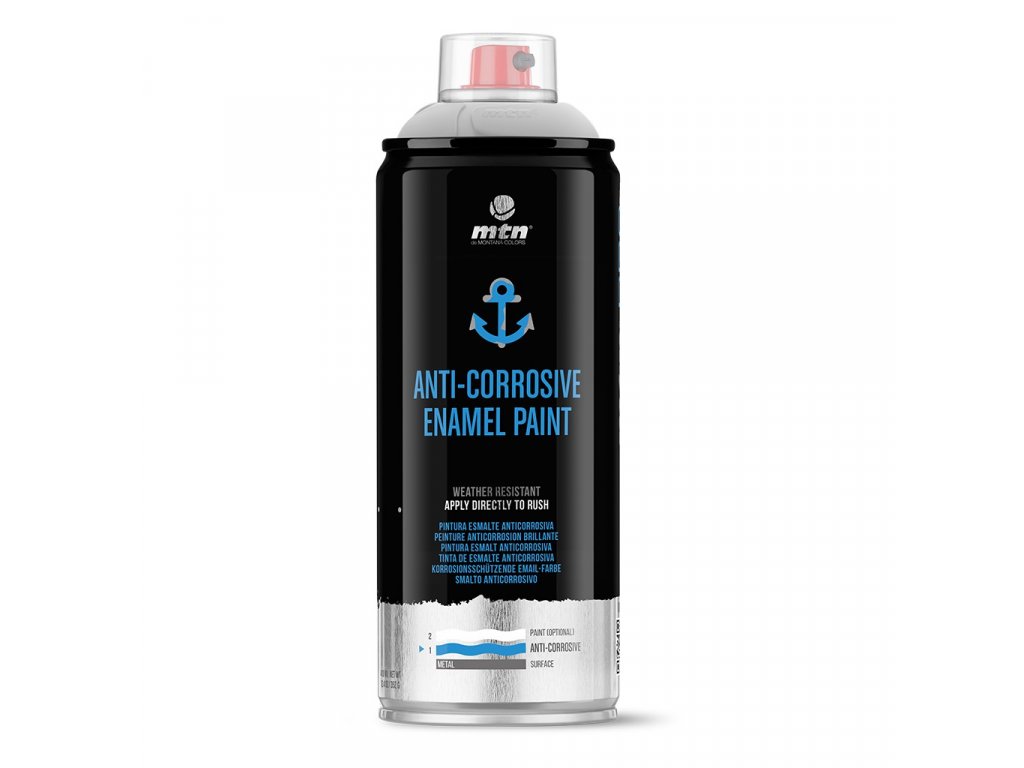 Jedná se o antikorozní sprej španělského výrobce MTN objemu 400ml, který je výjimečný svojí odolností ve venkovních podmínkách. Antikorozní barva je k dispozici v černé, bílé, zelené a RAL odstíny 3000 červené, 7016 šedé a 5010 modrá. Tato smaltová barva vytváří lesklý povrch, který je extreémně trvanlivý a chrání materiál vůči povětrnostním vlivům. Je vhodná na kovy napadené korozí a objekty v extrémních podmínkách. Pigment má velice dobré krycí vlastnosti, je rychleschnoucí a do 24 hodin je vyschlý úplně.