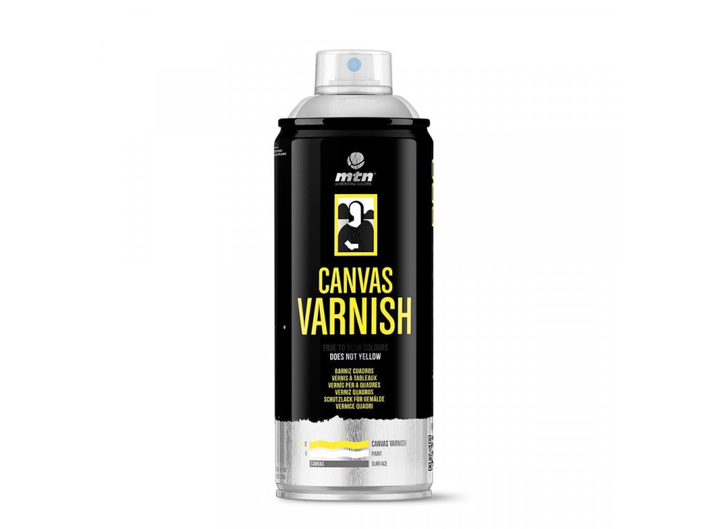 Jedná se o speciální akrylový, transparentní lak na plátna od španělského výrobce MTN. Canvas varnish se vyrábí ve variantě lesk, satén a mat. Po svém úplném zaschnutí nezanechává žádnou barevnou stopu a je 100% transparentní. Působí jako ochrana nejen proti mechanickému poškození, ale i proti působení U. V. záření a dalším povětrnostním vlivům. Bezbarvé laky je nutné aplikovat až po úplném vyschnutí předešlé vrstvy barvy. Je vhodný jak na olejové tak akrylové barvy, nepraská a rychle vysychá.