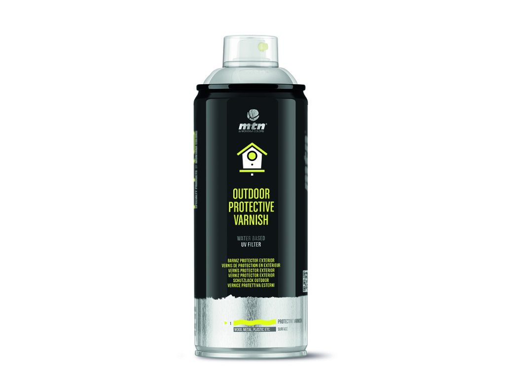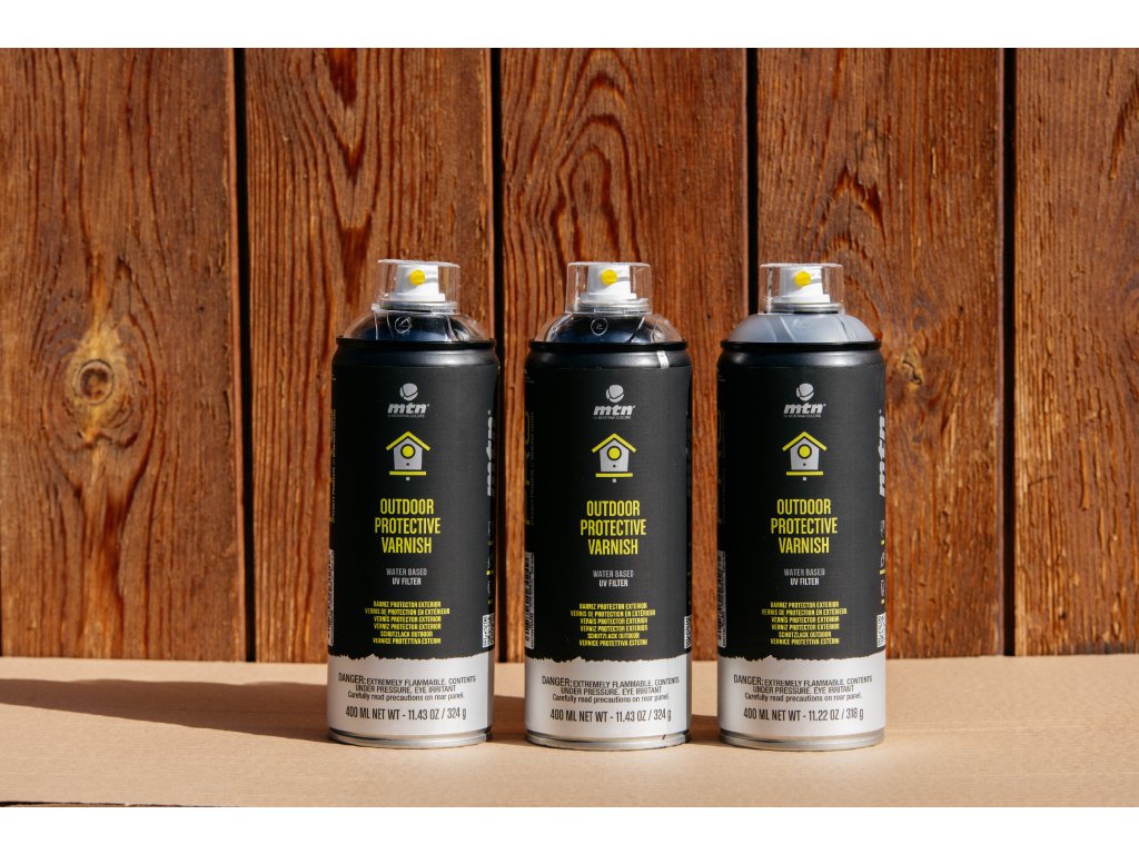 MTN PRO Outdoor Protective Varnish je vodou ředitelný lak ve spreji pro vnitřní a venkovní použití. Je k dispozici v matném, saténovém a lesklém provedení a poskytuje konzistentní výsledek s vynikající tvrdostí, pružností a odolností proti poškrábání, stejně jako ochranu proti UV záření.