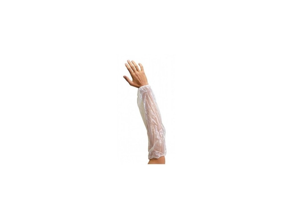 Ochranné návleky na předloktí, které jsou vyrobeny z transparentního polyethylenu/igelitu a na koncích mají fixační gumičky proti shrnování se návleku při práci.