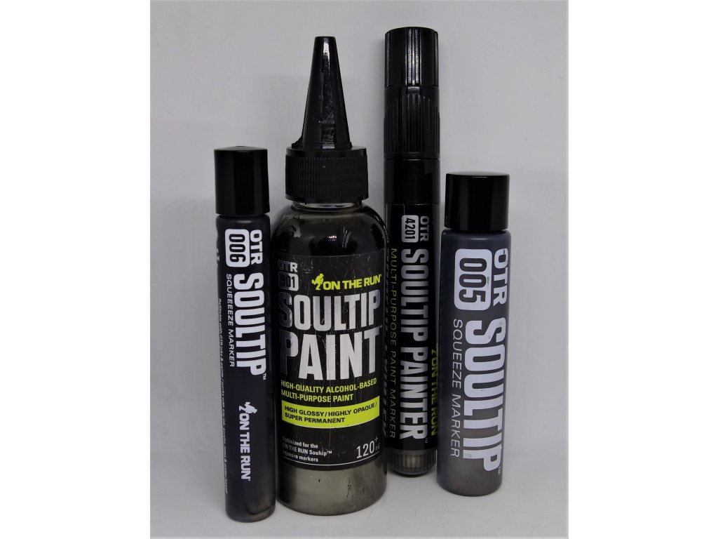 Squeezer německého výrobce On the run s hrotem šíře 6 mm. Popisovač je naplněn směsí lihové černé a stříbrné barvy, díky čemuž vzniká koktejl, který na světlé povrchy zanechává tmavou stopu a naopak na tmavé povrchy píše světle. Svůj vzhled stopa mění také v důsledku nasycení hrotu a typu povrchu materiálu. Každý tah je tak originální a vytváří efekt nerezi, nebo špinavého chromu. Tělo squeezeru je z velice měkkého plastu, čímž je umožněna regulace průtoku barvy hrotem. Doporučujeme psát na jemné a čisté povrchy. Squeezer je možné opětovně naplnit, či vyměnit hrot.