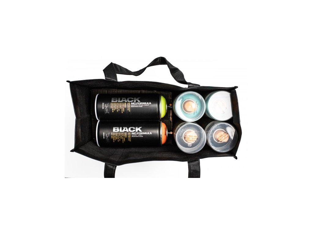 Taška Montana z netkané textile se zpěvněnými uchy. Kapacita tašky je 12 sprejů. Tašku je možné prát na jemný program.