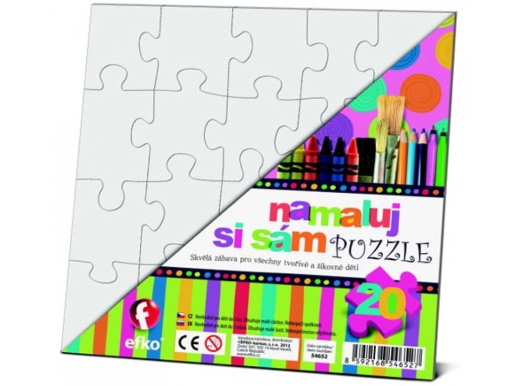 Čisté puzzle připravené k pomalování. Puzzle jsou tvořeny 20ti dílky z pevného kartonu s lakovanou úpravou. Díky tomu není materiál savý a lze na něj tvořit například akrylovými barvami, či fixami. Složené puzzle má formát 15x15 cm a balení obsahuje sadu 2 ks puzzle.