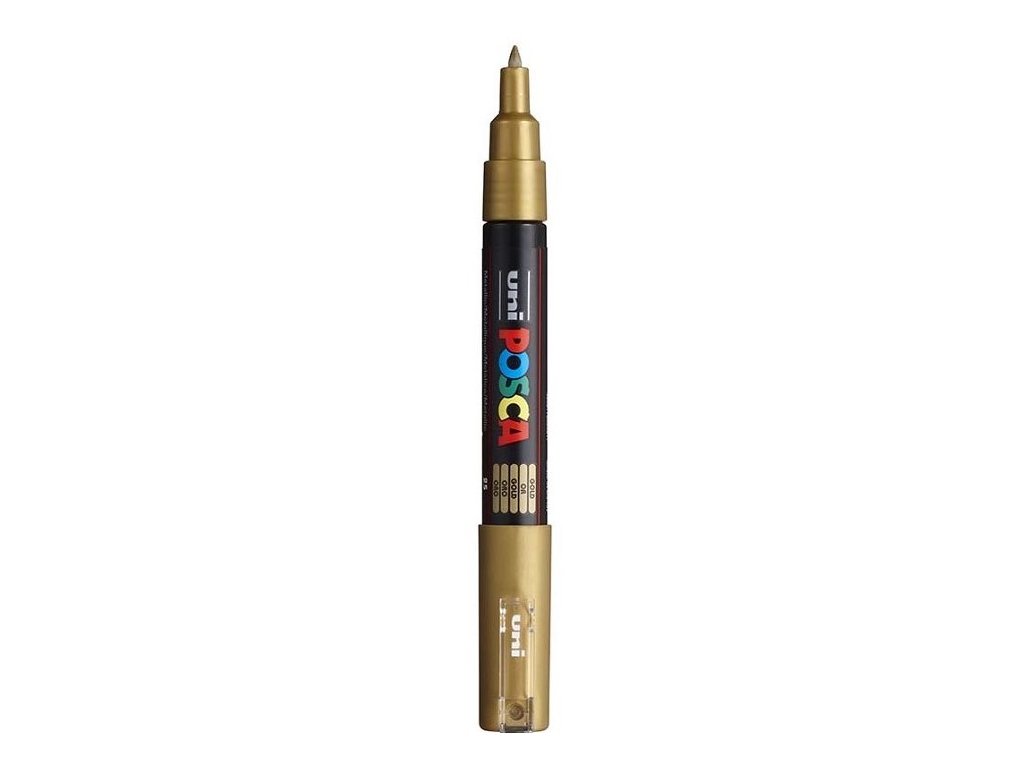 UNI Posca PC-1m japonského výrobce UNI. Fix s velmi tenkým, plastovým hrotem šíře 1,5 mm. Náplň je akrylová, tedy na vodní bázi. Po zaschnutí je pigment vodě i povětrnostním vlivům odolný a je tedy ho možné použít jak v interiéru, tak exteriéru. Skvělé využití mají tyto fixy při tvorbě na papír, stopa může být trvalá na terakotě (po fixaci pečením na 220 stupňů 45 min), porcelán a sklo (po fixaci pečením na 160 stupňů 45 min a následným přelakováním čirým lakem), textil (po zažehlení z rubové strany), kov, plast, dřevo, plasty a další materiály. Akrylový lak má velmi dobré krycí vlastnosti s matným výsledným efektem. Barva je netoxická a tedy vhodná i na bodypainting. Díky pevnému a tenkému hrotu je možné docílit velice jemných a precizních tahů.