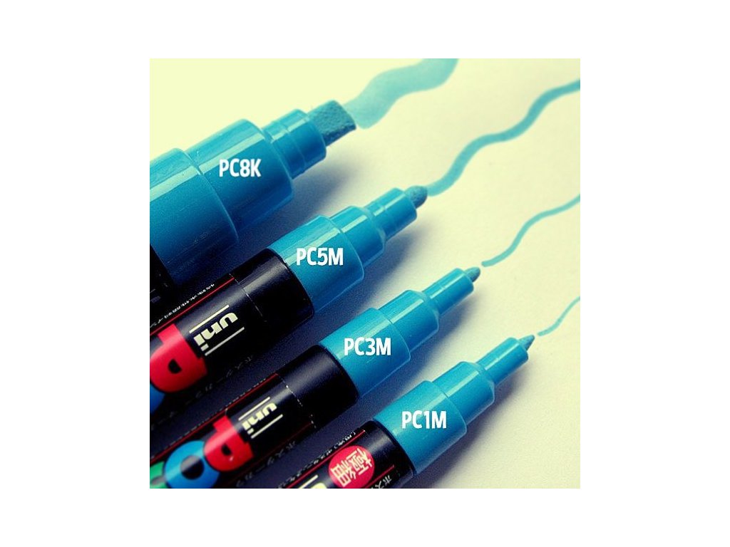 UNI Posca PC-5br japonského výrobce UNI. Fix se štětcovým hrotem šíře 1-4 mm. Náplň je akrylová, tedy na vodní bázi. Po zaschnutí je pigment vodě i povětrnostním vlivům odolný a je tedy ho možné použít jak v interiéru, tak exteriéru. Skvělé využití mají tyto fixy při tvorbě na papír, stopa může být trvalá na terakotě (po fixaci pečením na 220 stupňů 45 min), porcelán a sklo (po fixaci pečením na 160 stupňů 45 min a následným přelakováním čirým lakem), textil (po zažehlení z rubové strany), kov, plast, dřevo, plasty a další materiály. Akrylový lak má velmi dobré krycí vlastnosti a v nabídce je 55 odstínů s matným výsledným efektem, případně v metalické verzi. Barva je netoxická a tedy vhodná i na bodypainting. Šíře hrotu 1-4 mm těchto fixů je vhodná na silnější tahy, případně menší plochy. Díky flexibilitě hrotu je možné docílit dynamických tahů.