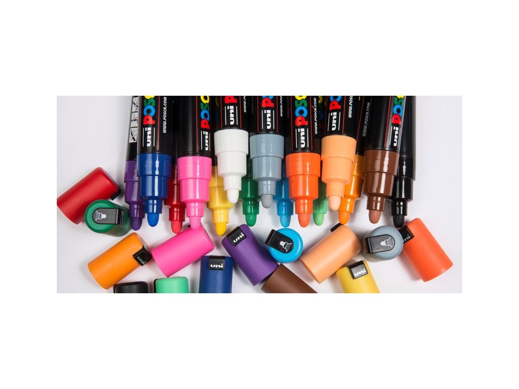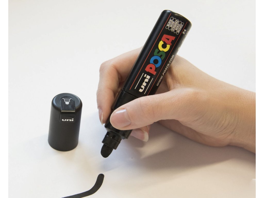 UNI Posca PC-7m japonského výrobce UNI. Fix s kulatým hrotem šíře 4-6 mm. Náplň je akrylová, tedy na vodní bázi. Po zaschnutí je pigment vodě i povětrnostním vlivům odolný a je tedy ho možné použít jak v interiéru, tak exteriéru. Skvělé využití mají tyto fixy při tvorbě na papír, stopa může být trvalá na terakotě (po fixaci pečením na 220 stupňů 45 min), porcelán a sklo (po fixaci pečením na 160 stupňů 45 min a následným přelakováním čirým lakem), textil (po zažehlení z rubové strany), kov, plast, dřevo, plasty a další materiály. Akrylový lak má velmi dobré krycí vlastnosti a v nabídce je 10 odstínů s matným výsledným efektem. Barva je netoxická a tedy vhodná i na bodypainting. Díky kulatému hrotu u těchto fixů je fix vhodný například pro pokrývání větších ploch, či lineární kresbu s kulatým zakončením tahu.