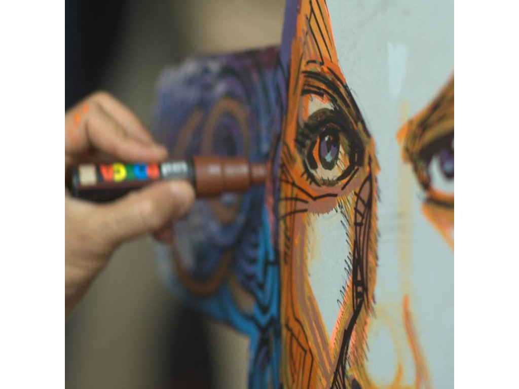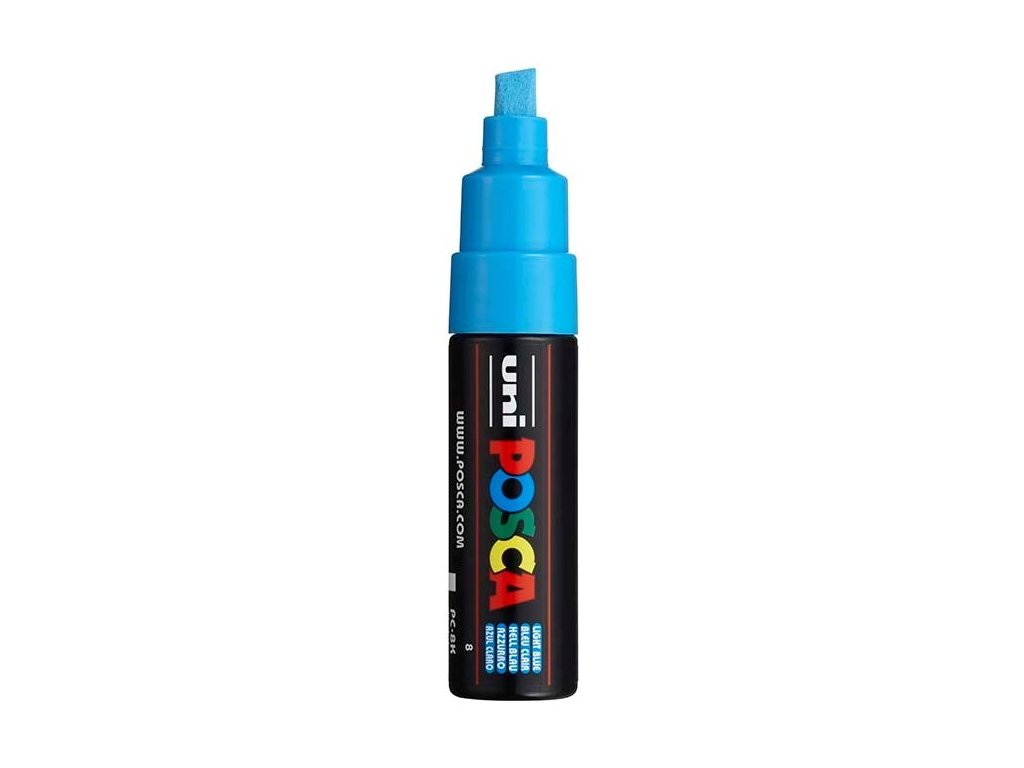 UNI Posca PC-8k japonského výrobce UNI. Fix se seříznutým hrotem šíře 8 mm. Náplň je akrylová, tedy na vodní bázi. Po zaschnutí je pigment vodě i povětrnostním vlivům odolný a je tedy ho možné použít jak v interiéru, tak exteriéru. Skvělé využití mají tyto fixy při tvorbě na papír, stopa může být trvalá na terakotě (po fixaci pečením na 220 stupňů 45 min), porcelán a sklo (po fixaci pečením na 160 stupňů 45 min a následným přelakováním čirým lakem), textil (po zažehlení z rubové strany), kov, plast, dřevo, plasty a další materiály. Akrylový lak má velmi dobré krycí vlastnosti a v nabídce je 35 odstínů s matným výsledným efektem. Barva je netoxická a tedy vhodná i na bodypainting. Díky seříznutému hrotu u těchto fixů je fix vhodný například pro kaligrafii, tagy, nebo pokrývání větších ploch.